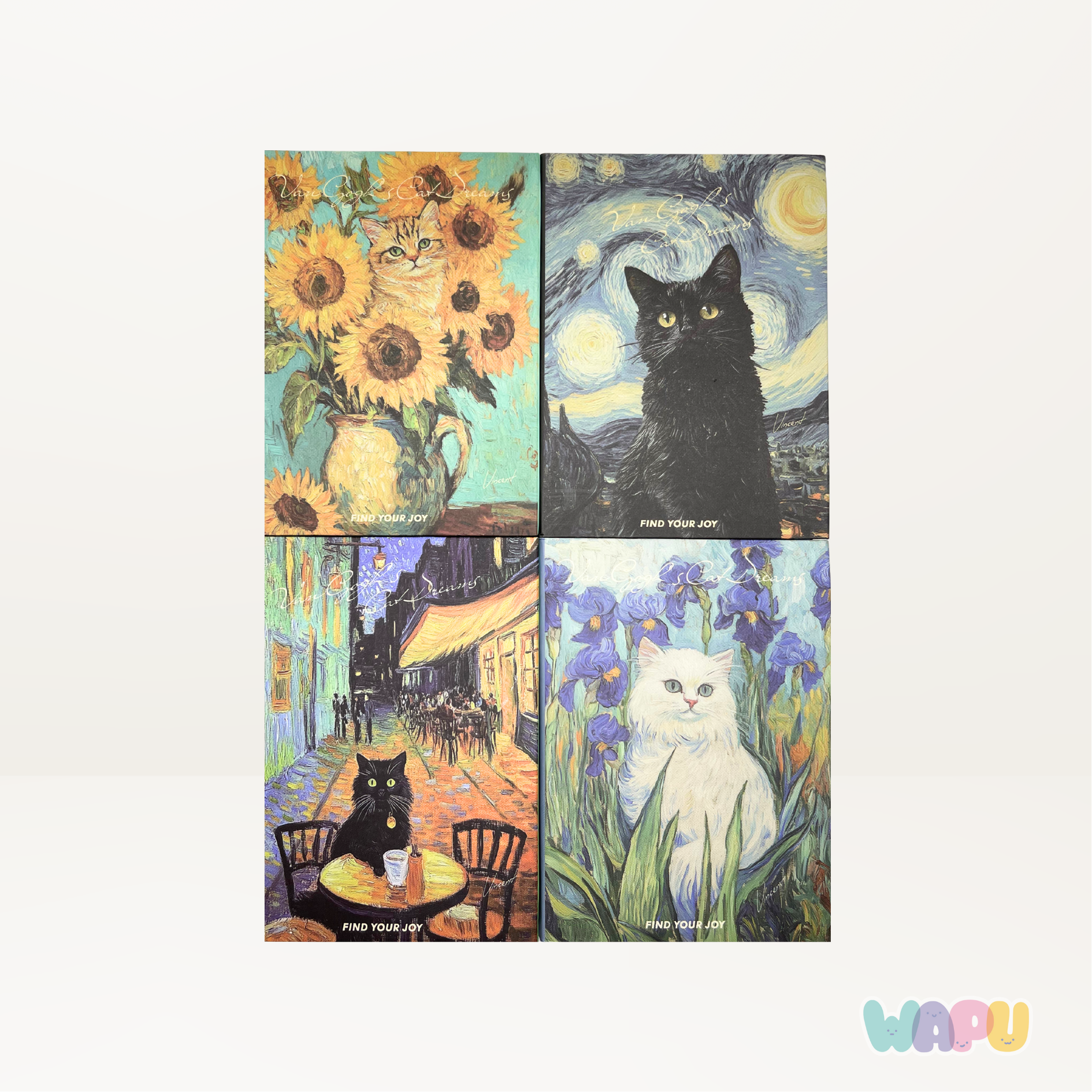 - Libreta de bolsillo con ilustraciones de gatos y pinturas de Van Gogh